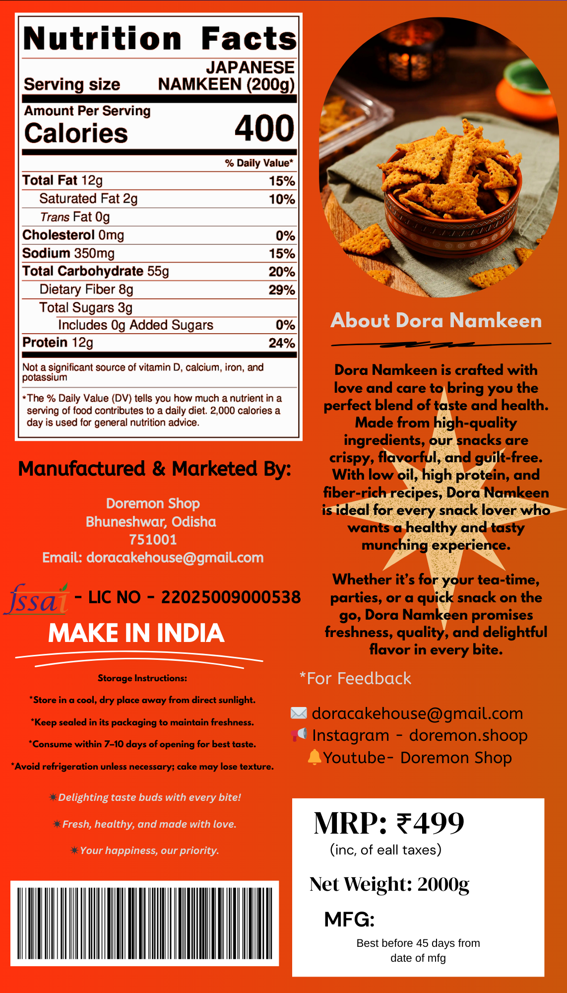 Tangy, zesty, and full of crunch β Dora Namkeen Tomato Flavour brings you the perfect mix of crispy bites with a burst of tomato magic. Once you taste it, you wonβt stop munching! πβ¨